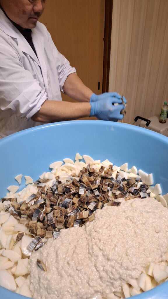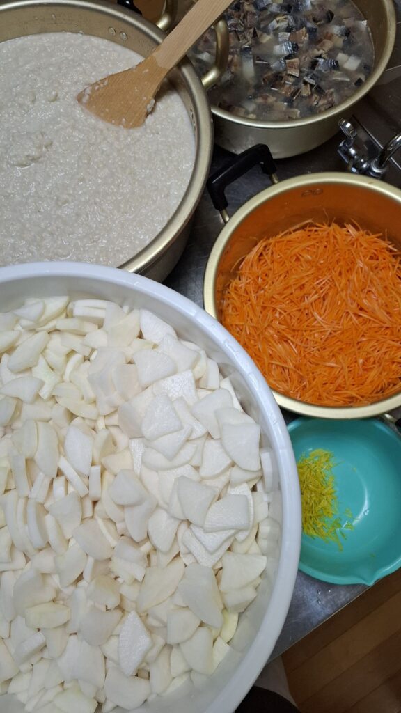 秋からの大根の栽培、お米から自家製麹、そして甘酒を仕込み、大根を塩漬けして5日待ち、にしんなどの下処理をして本漬けに臨みます。